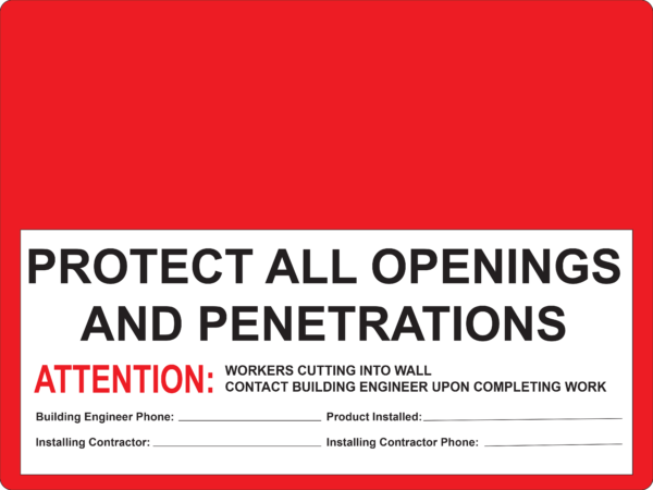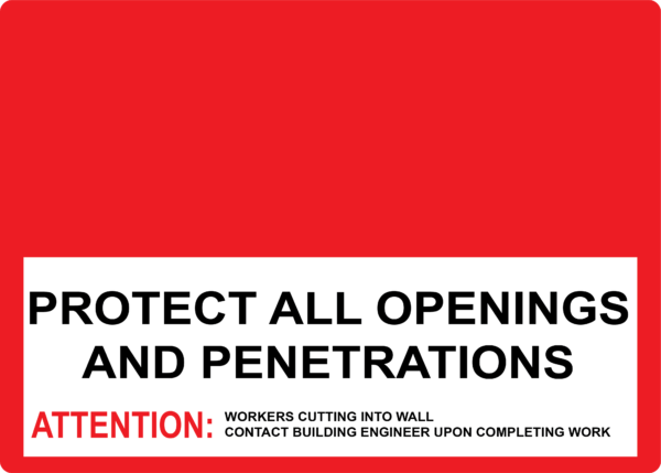 Kolbi Firewall Signs are compliant with IBC 703.7 2018 (see below for details) and are the best option for quickly identifying the fire and/or smoke rating of a wall in an emergency. Customize signs by adding other important information, such as the installing contractor, and the building engineer’s contact information. This information is critical when retrofitting work needs to be done.