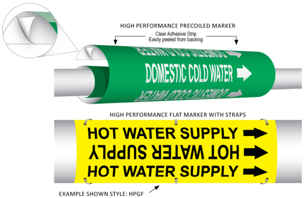 Kolbi High Performance Markers are manufactured to withstand high temperatures, harsh chemicals and intense UV exposure. No surface preparation, cleaning or drying of the pipes is necessary with our High Performance Markers allowing them to install much faster than a traditional self-adhesive label.